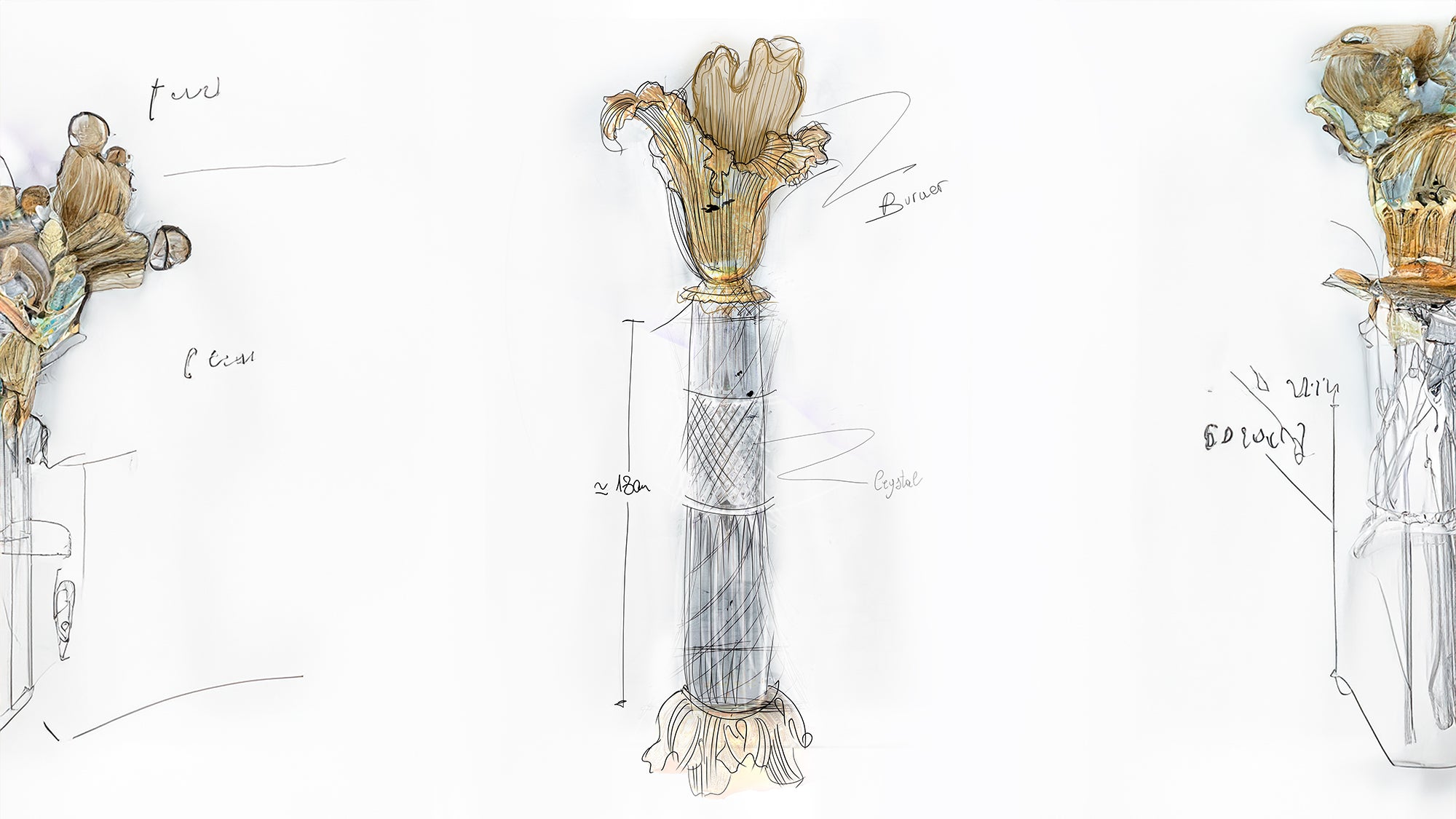 The delicate engraving on the crystal not only highlights the shape of the tulip but also allows light to reflect and diffuse uniquely, creating a warm and welcoming atmosphere.