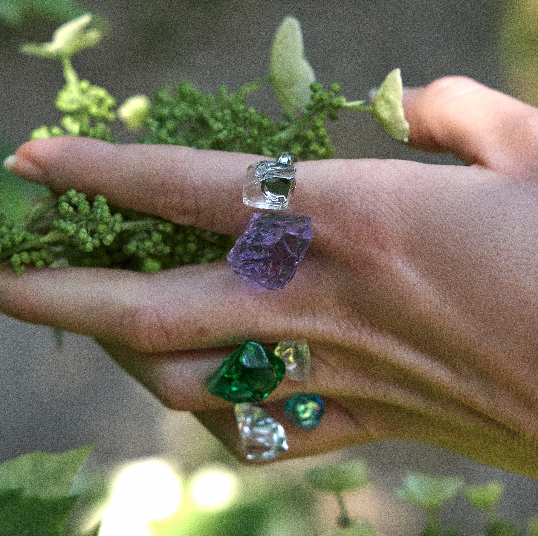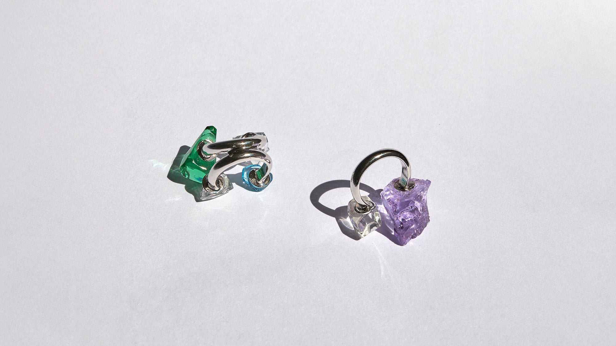 The Lumina collection is a lead crystal glass jewelry line crafted by our studio, encompassing everything from product development to artistic direction and the execution of the photo shoot. The collection celebrates uniqueness and craftsmanship. The creation process begins in the forge, where crystal is molten to blow vases and art glass pieces. The leftover material that accumulates in the crucible is transformed into sparkling, razor-sharp shards, which are then individually smoothed and turned into the gems that illuminate the jewelry. Each piece reflects light in a distinctive way, each piece is one-of-a-kind.